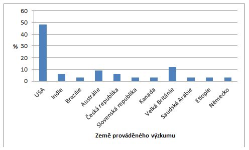 e) analyzované výzkumné studie pocházely zejména z anglosaských zemí (viz graf 5).